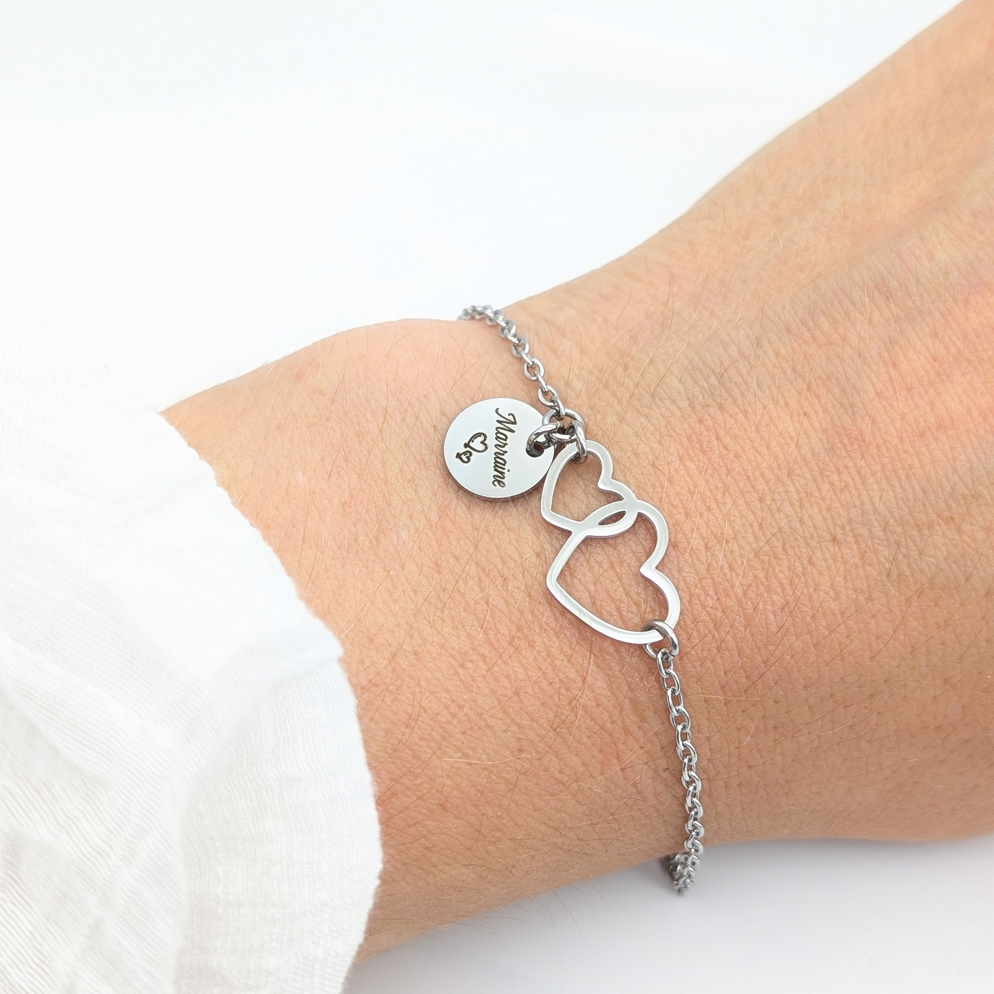 Succombez à notre bracelet orné d'un délicat pendentif duo de cœurs, symbole d'amour et de tendresse.
